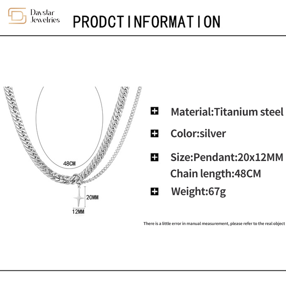 Hip Hop Cuban Link Chain Necklace Titanium Steel Cross Pendant Necklace Double Layer Clavicle Chain Necklace Jewelry