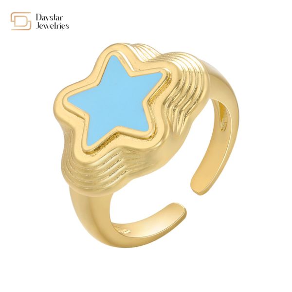 Star type Gold Plated Y2k Rings Colorful Enamel Open Women Jewelry Images |